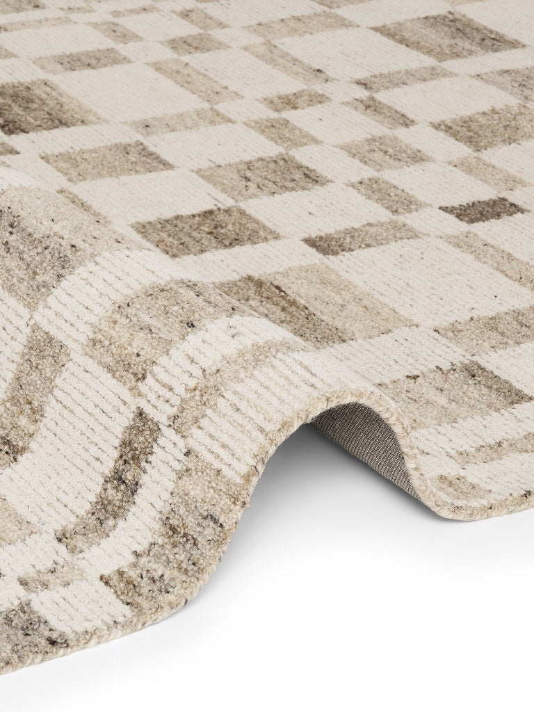 Wollen Vloerkleed Geruit Boho 1.0 Bruin/Crème