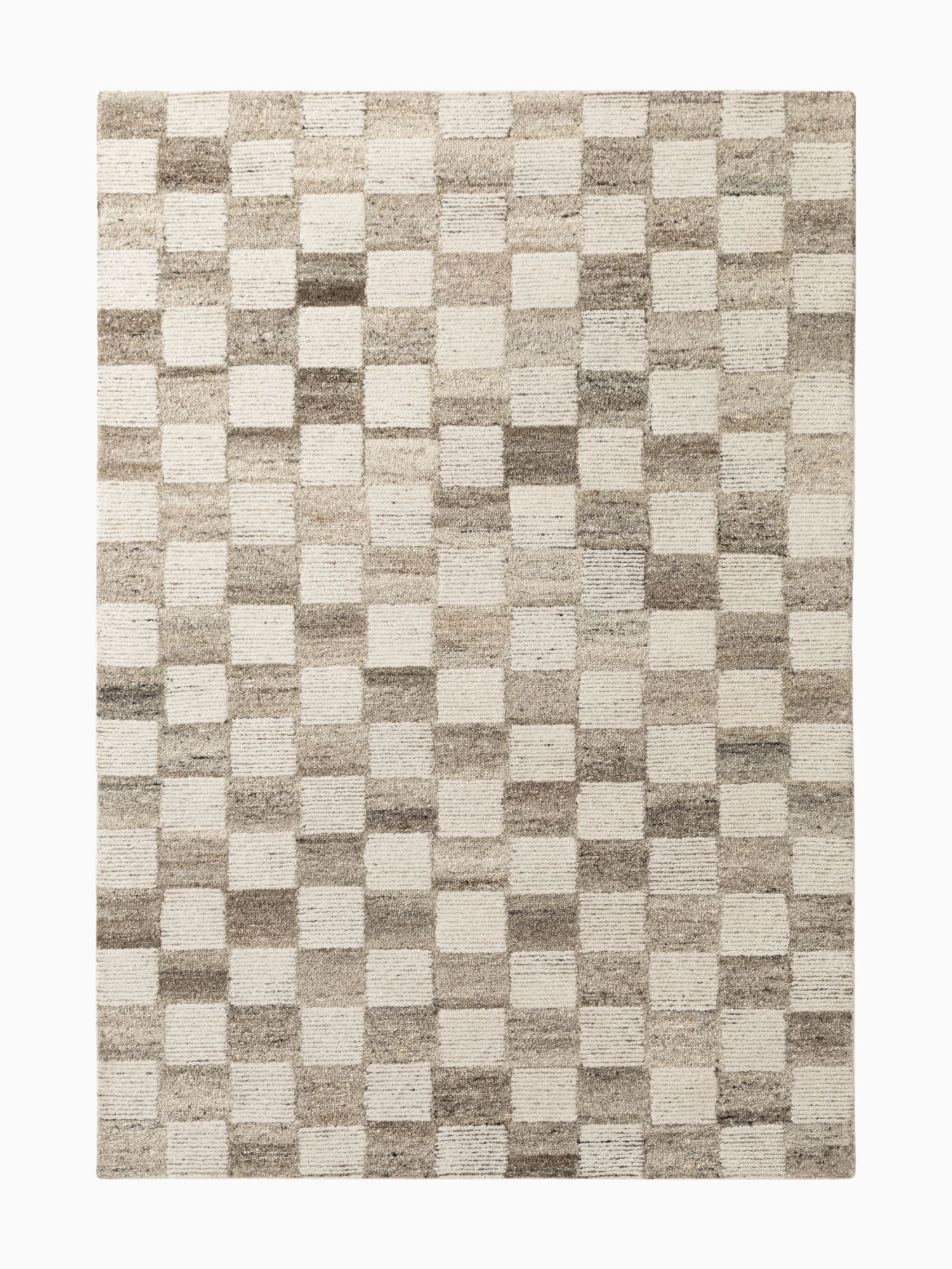 Wollen Vloerkleed Schaakbordpatroon Boho 1.0 Bruin/Crème