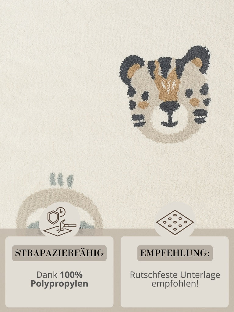 Kinderteppich Safari Tiere Gepunktet Creme Bunt