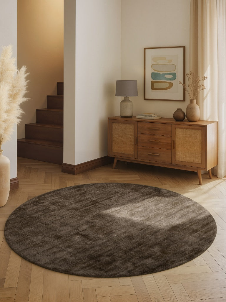 Teppich „Jane“ von vikosa – Stilvoll wohnen mit Glanz & Gefühl. Wohlig weich, brillant schön, natürlich gedacht: „Jane“ ist mehr als nur ein Teppich. Er ist ein Statement für stilvolles Wohnen, ein Gefühl unter den Füßen, ein Hauch von Luxus im Alltag. Gefertigt aus edler Viskose und einem stabilen Rücken aus recycelter Baumwolle, begeistert „Jane“ mit einer außergewöhnlich weichen, flauschigen Haptik. Jeder Schritt auf ihm fühlt sich an wie ein sanftes Versprechen von Komfort. So ist der Viskoseteppich ideal für gemütliche Wohnbereiche wie Wohnzimmer, Schlafzimmer oder ruhige Rückzugsorte. Der von Hand gewebte Teppich überzeugt mit einem feinen, seidig schimmernden Glanz, der jeden Raum aufwertet. Je nach Lichteinfall spielt der Teppich mit brillanten Farbtönen und changiert zwischen hell und dunkel – ein Zauberspiel der Farben, das Ihre Einrichtung zum Strahlen bringt. Sein einfarbiges Design lässt sich mühelos kombinieren, ob modern, klassisch oder kreativ, „Jane“ passt sich an und verleiht jeder Einrichtung das gewisse Etwas. Die Farbbrillanz der Viskosefaser sorgt dabei für elegante Tiefe und Ausdrucksstärke. Und das Beste: Viskose ist nicht nur schön, sondern auch funktional. Die Faser bindet kaum Staub oder Allergene, ideal für alle, die Wert auf ein sauberes Wohnklima legen. Wichtig zu wissen: Viskose reagiert empfindlich auf Feuchtigkeit und eignet sich daher nicht für Bad oder Küche. Jane ist für alle die das Besondere lieben: Handgemacht, Weich und mit einem Hauch Magie.