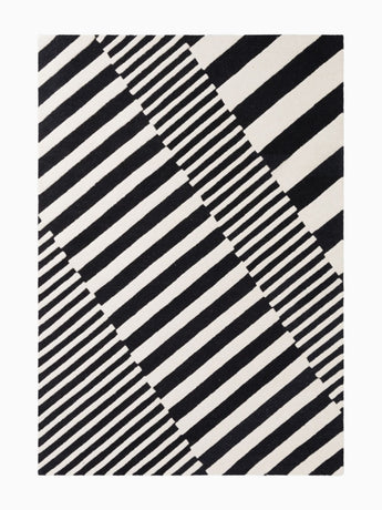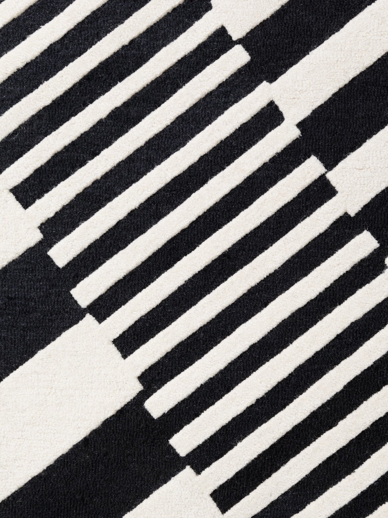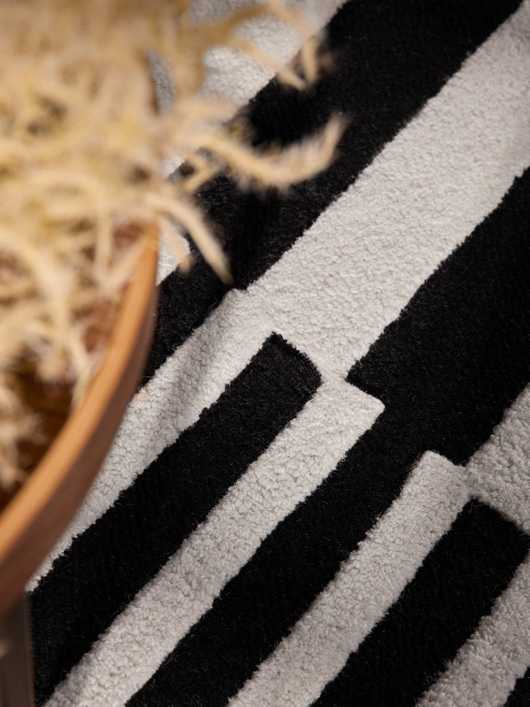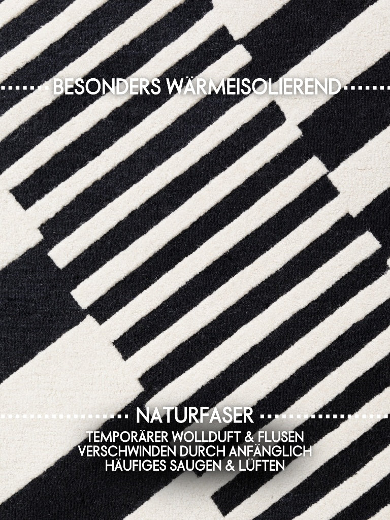 Handgefertigter Wollteppich Flux Schwarz/Weiß
