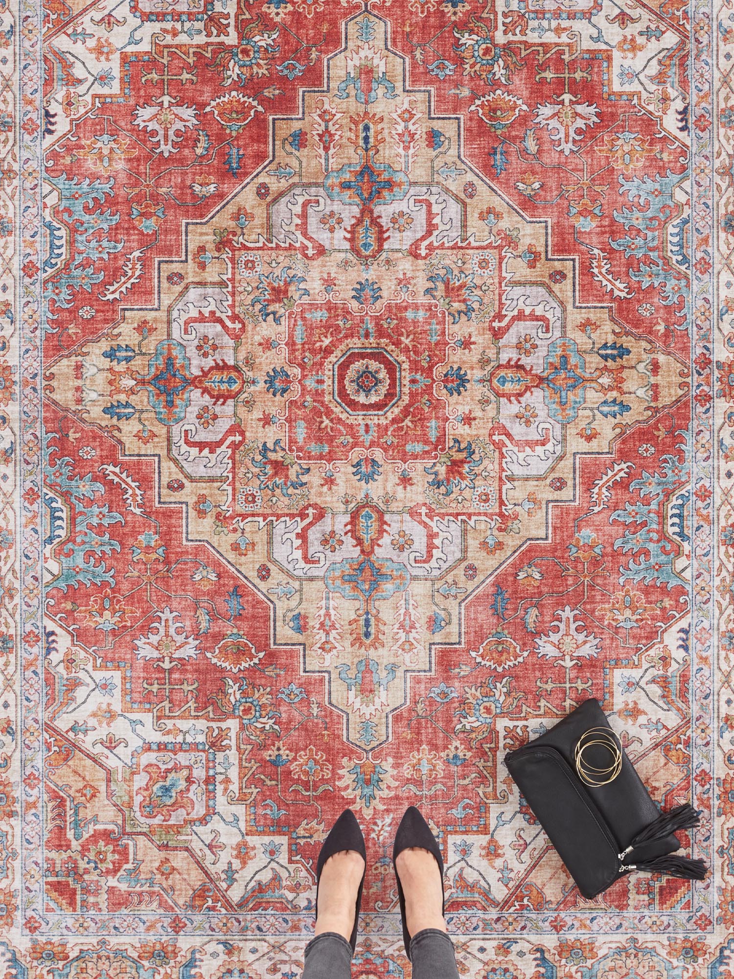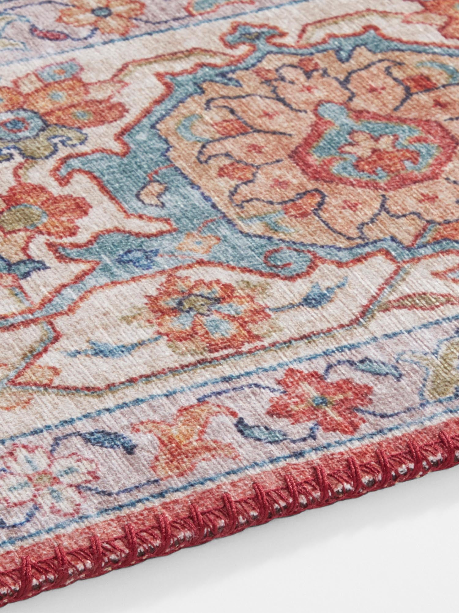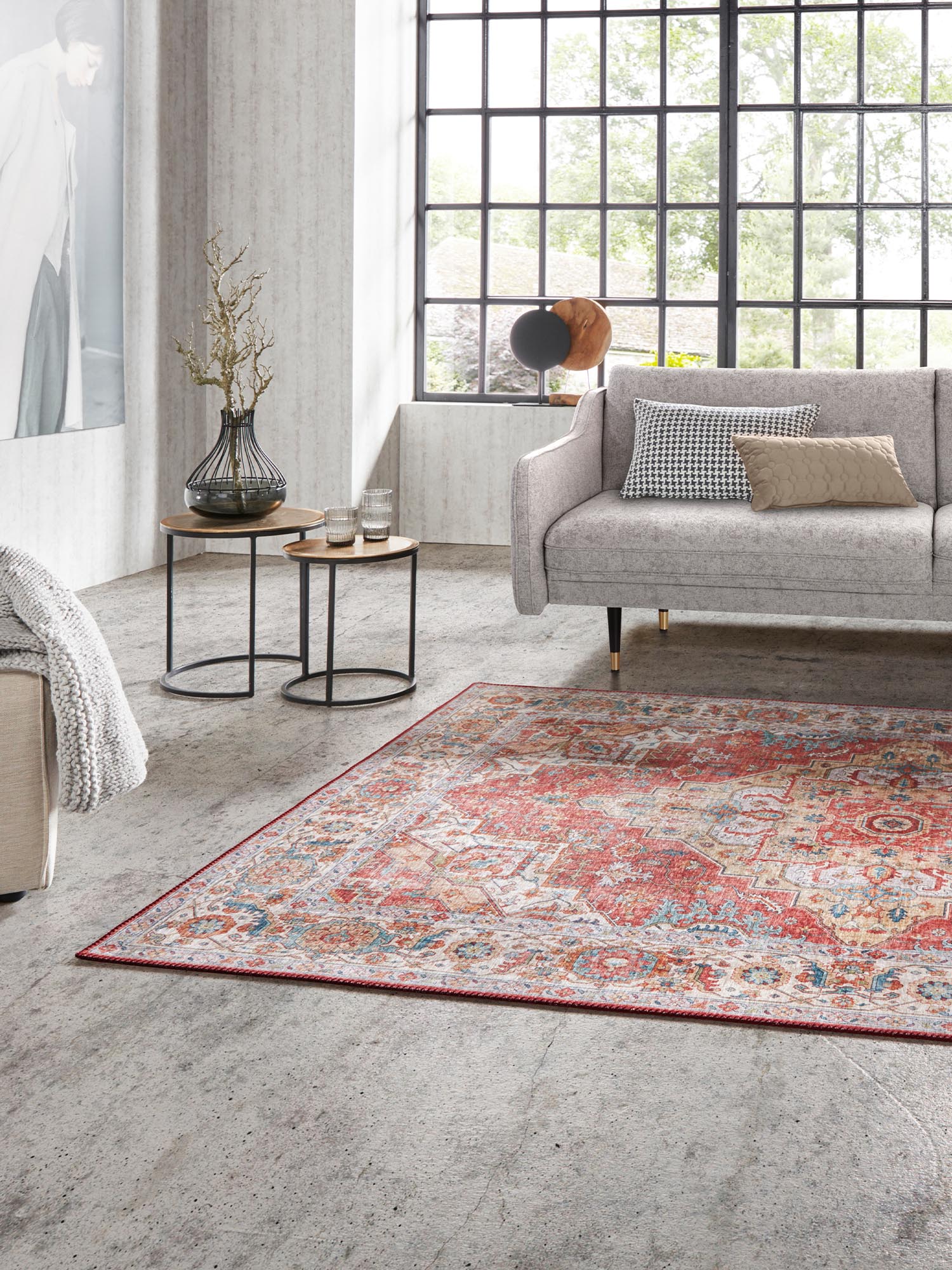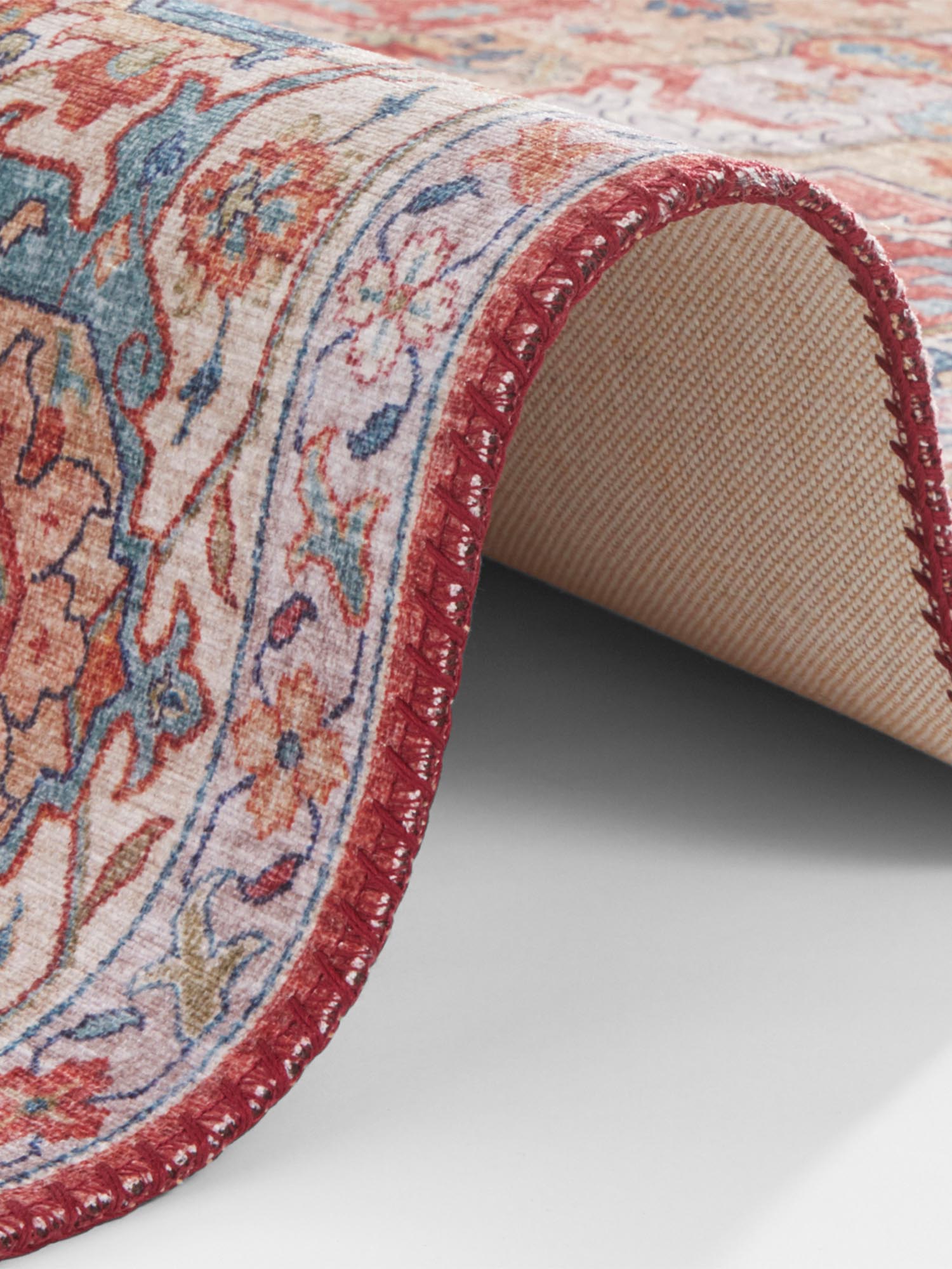 Sylla is een extravagant woonaccessoire uit de ASMAR-collectie van Hanse Home. Dit machinaal vervaardigde vloerkleed is een echte blikvanger in elke woonkamer! De hoogwaardige afwerking en de zorgvuldig geselecteerde materialen zijn over de hele linie indrukwekkend. Het klassieke, maar toch modern geïnterpreteerde vintage design wordt geaccentueerd door levendige kleuren en een kleurgecoördineerde rand in trendy handgemaakte stijl maakt het geheel perfect af. Het klassieke en zeer gedetailleerde design is veelzijdig te combineren met verschillende interieurstijlen en dit vloerkleed komt zelfs goed tot zijn recht in een modern ingericht appartement. Dankzij het gebruikte polyester is dit vloerkleed bijzonder duurzaam en onderhoudsvriendelijk; de meeste vlekken zijn eenvoudig te verwijderen met een standaard tapijtreiniger. Het materiaal zorgt bovendien voor een fluweelzacht oppervlak. Het vloerkleed kan ook probleemloos worden gebruikt in ruimtes met vloerverwarming. Houd er rekening mee dat de kleuren op uw beeldscherm kunnen afwijken van de werkelijke kleuren.