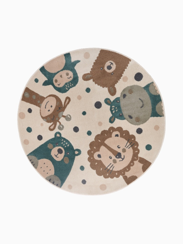 Kinderkleed met dieren, beige, rond
