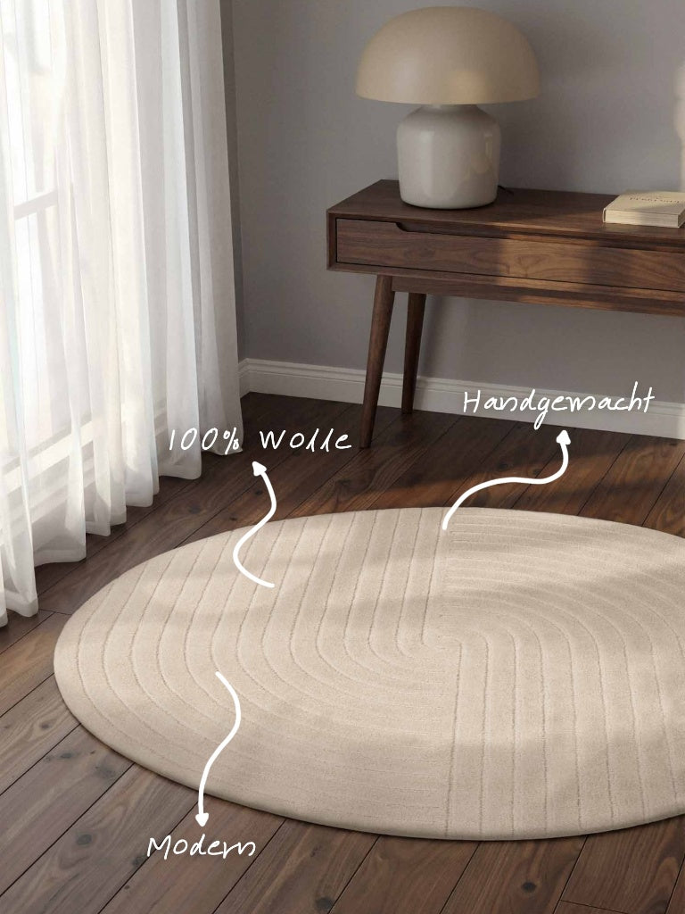 Handgetufteter Wollteppich Arcura Creme Weiß Rund