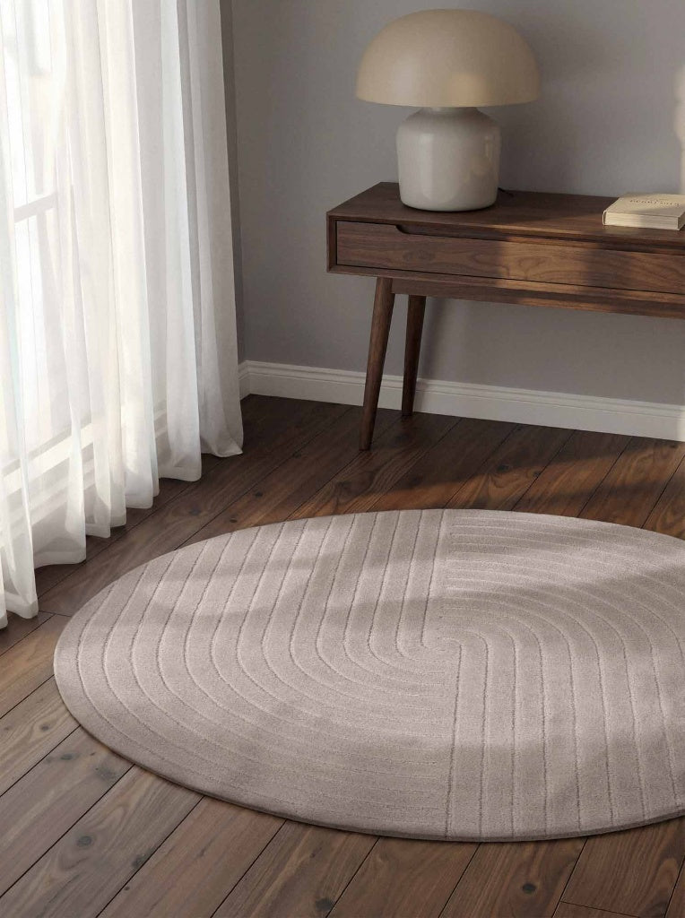 Der Teppich Arcura vereint robustes Naturmaterial mit einem kunstvollen, geometrischen Design, das jedem Raum eine stilvolle und moderne Atmosphäre verleiht. Dank seiner klassischen, einfarbigen Optik fügt sich Arcura harmonisch in jede Einrichtung ein und setzt dabei dezente Akzente, die Ihr Zuhause besonders einladend wirken lassen. Handgetuftet aus natürlicher Wolle besticht Arcura nicht nur durch seine Langlebigkeit und Pflegeleichtigkeit, sondern bietet Ihnen zudem einen hohen Wohnkomfort: Der Teppich wirkt schallabsorbierend und wärmeisolierend, was für ein angenehmes Raumklima sorgt. Sein symmetrischer Hoch-Tief-Effekt verleiht ihm eine besondere Struktur, die sowohl optisch als auch haptisch überzeugt. Typische Flusenbildung, die bei Wollteppichen anfänglich auftreten kann, nimmt durch die regelmäßige Nutzung deutlich ab. Der 1,5 cm hohe Flor sorgt für ein weiches, angenehmes Laufgefühl. Durch das Spiel von Licht und Faserrichtung kann sich die Farbwirkung leicht verändern, wodurch Arcura eine lebendige und natürliche Ausstrahlung erhält. Der anfängliche Naturgeruch verfliegt schnell, sodass Sie sich schon bald uneingeschränkt an Ihrem neuen Teppich erfreuen können. Mit Arcura entscheiden Sie sich für mehr als nur einen Teppich – Sie wählen ein einzigartiges Kunstwerk aus hochwertiger, natürlicher Wolle, das Ihrem Zuhause Wärme, Komfort und zeitlose Eleganz schenkt. Dieses besondere Stück verwandelt Ihre Räume in ein Wohlfühlparadies und begleitet Sie mit seiner stilvollen Ausstrahlung über viele Jahre. Gönnen Sie sich diesen außergewöhnlichen Begleiter und erleben Sie, wie Arcura Ihrem Zuhause eine ganz persönliche Note verleiht.