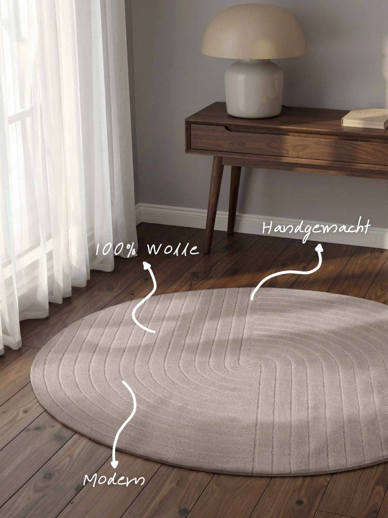 Handgetufteter Wollteppich Arcura Grau Rund