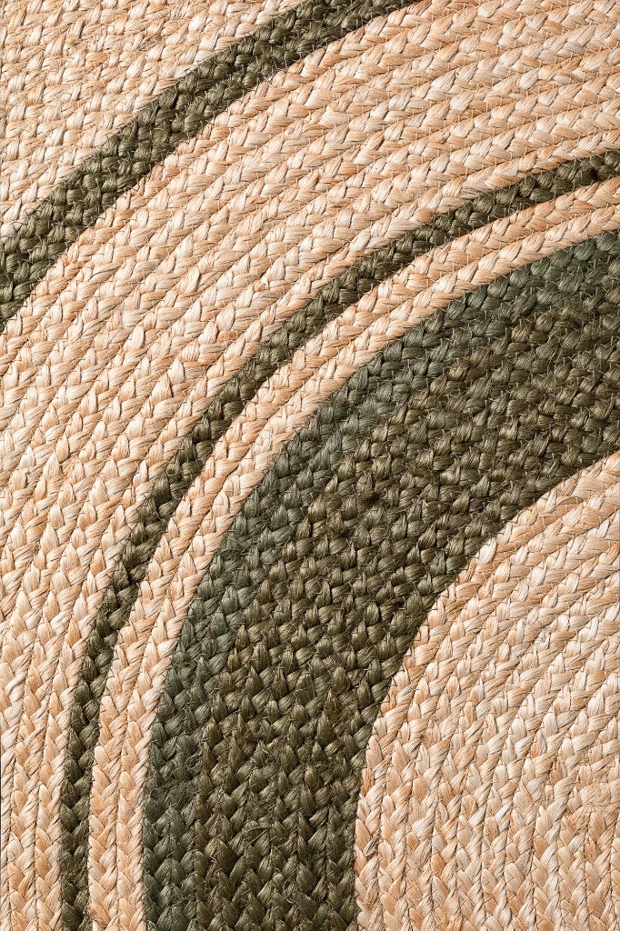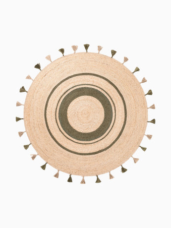 Jute Teppich Fransen Basil Beige Grün Rund