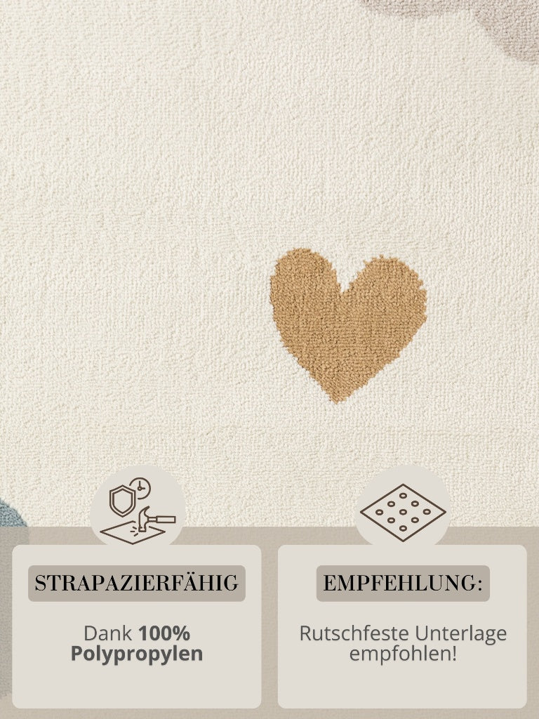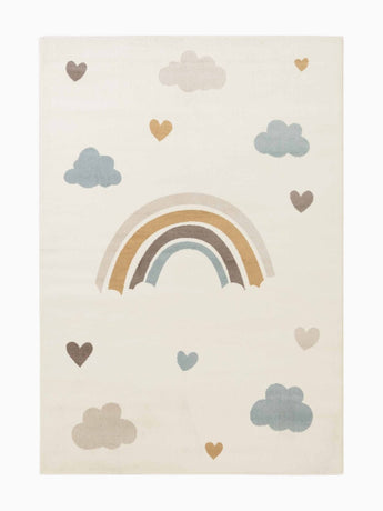 Kinderteppich Regenbogen Wolken Creme Bunt